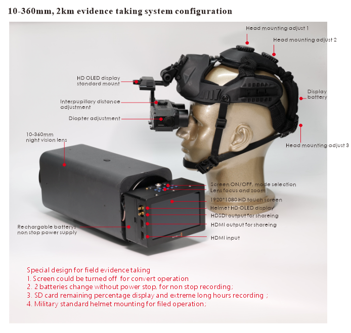 Head-Mounted OLED Display: Dual high-definition OLED screens (1920x1080) for covert observation, with one-touch on/off for stealth.