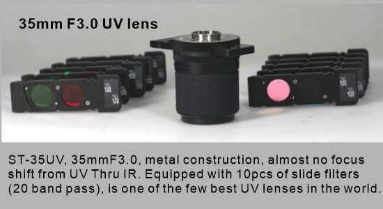 ST-35UV 35mm F3.0 UV镜头是EL3imaging的高性能色差校正镜头,专为UV-VIS-IR成像设计。采用金属结构,几乎无焦点偏移,跻身全球顶级20个UV镜头,适用于法医、科学和艺术领域。